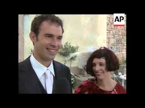 Dog Of Honour Wedding }}- (16 Aug 2009) SHOTLIST( Verezzi, Italy 16 Aug 2009 1. Wide pan from Savona on coastline to houses in Verizzi 2. Various of guest of honour dogs 3. Wide of ...